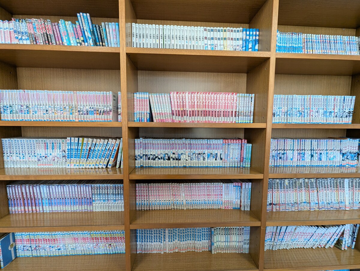 ロビーと図書室には、絵本や一般書、漫画が揃っており、本の貸し出しサービスも利用できます。