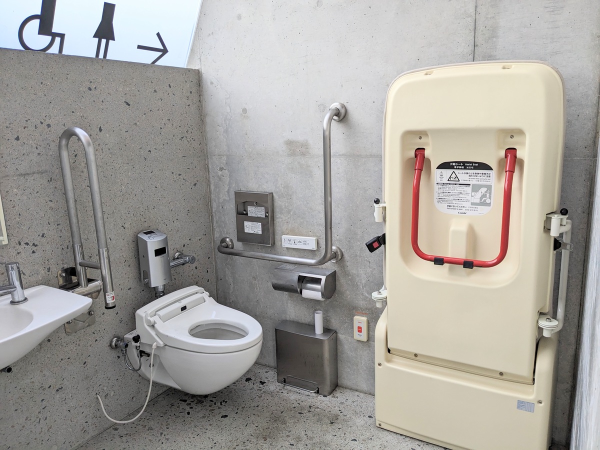 多目的トイレに介助シートがあるので、ベビーシートで替えることが難しい幼児でも大丈夫そうです。